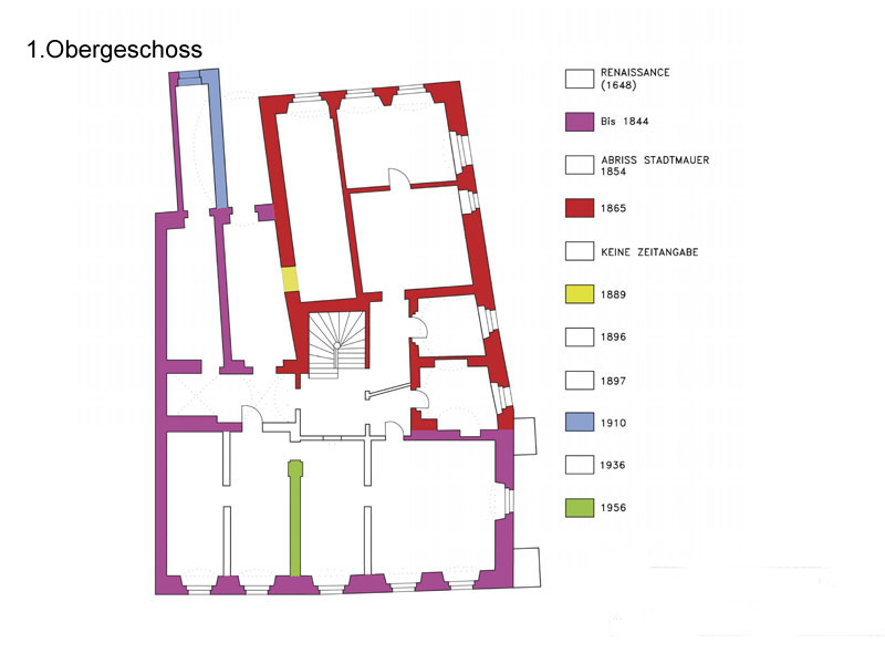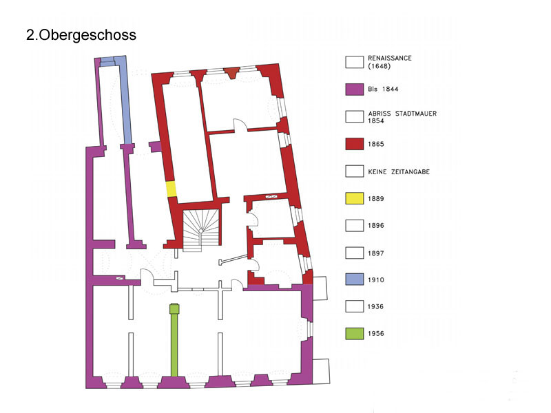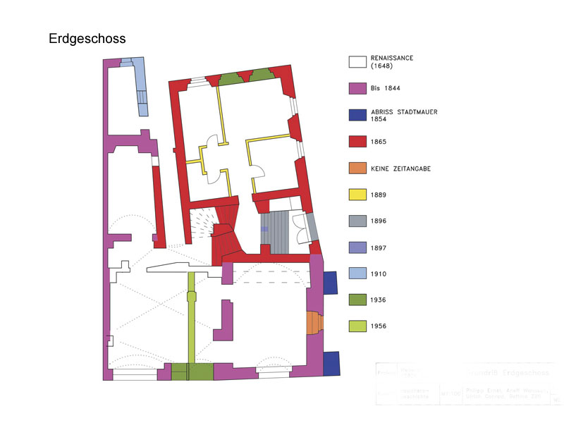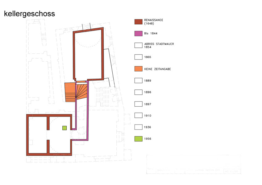 Leistungen: Bauaufnahme inkl. Ermittlung der Gebäudechronologie und der Bauphasen, zeichnerischer Darstellung, Erstellung eines Raumbuches sowie Durchführung von bautechnischen Untersuchungen
