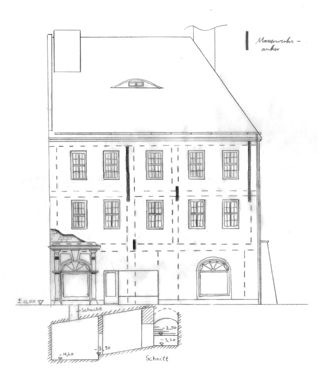 Für das typische Görlitzer Hallenhaus wurde eine umfangreiche Bauaufnahme als Grundlage für weitere Planungen durchgeführt. Zur Bestimmung der Hauptbauphasen, zur Rekonstruktion des Ursprungsbaus sowie zur Ermittlung der ältesten Gebäudeteile wurden Archivrecherchen angestellt, bautechnische Untersuchungen an der Bausubstanz durchgeführt, Aufmaße und zeichnerische Darstellungen des Gebäudes angefertigt sowie ein Raumbuch erstellt.