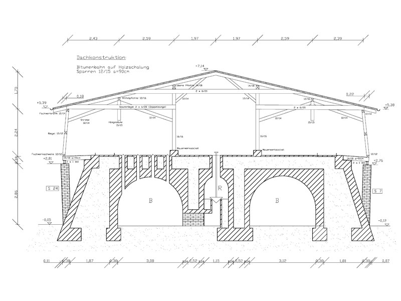 Leistungen: Bauaufnahme, Sanierungsplanung (Leistungsphasen 1-6), Tragwerksplanung (alle Leistungsphasen)